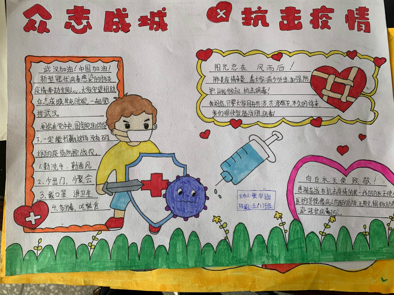 老師們精心準備的“弘揚偉大的抗疫精神”的主題班會的教案、課件;學生收集的感人抗疫小故事;以班級為單位開展了“弘揚偉大的抗疫精神”的主題班會,學生講述的抗疫小故事;學生在國旗下拳拳的莊嚴宣誓;學生鏗鏘感人的抗疫演講比賽;學生內(nèi)容豐富、栩栩如生的手抄報;全體師生均在活動中談感想,寫反思,無不為中國在世界上樹立一個負責任、有擔當?shù)拇髧蜗?,無不為自己是一名中國人而產(chǎn)生深深的自豪感!