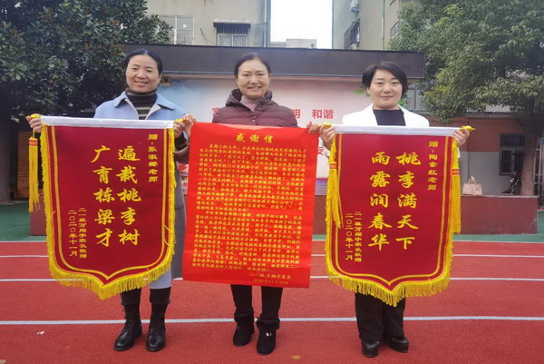 12月2日,外國語小學(xué)二一班家長走進(jìn)班級,給班主任陶素紅和張淑娜老師贈送錦旗和感謝信,班級不時傳來陣陣掌聲,為兩位老師喝彩點(diǎn)贊。