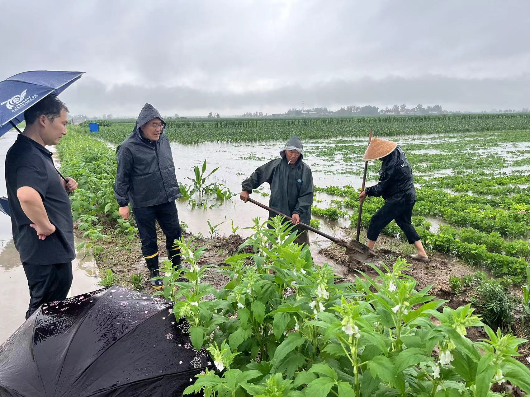 黨政主要領(lǐng)導(dǎo)靠前指揮,深入一線。組織機關(guān)干部包村、村干部包組、網(wǎng)格員包地塊,層層壓實責(zé)任,組織鎮(zhèn)村干部到田間地頭實地查看,摸清、摸透當(dāng)前農(nóng)田積水情況和溝渠暢通情況,將農(nóng)田積水面積及時上報,發(fā)動群眾迅速掀起農(nóng)田排澇熱潮;黨委政府及時召集農(nóng)業(yè)、水利、土地等部門根據(jù)農(nóng)田走勢,實地查看農(nóng)田積水情況,以村組為單位因地制宜制定排澇方案,組織機械和人力開展搶疏搶排作業(yè)。通過開挖溝渠、機械抽水等措施,打通堵點、暢通阻點,全力清積水、保秋田;以四個各管理區(qū)為單位,組織機關(guān)干部協(xié)助各村結(jié)合實際做細(xì)做實排澇工作。對于受洪水影響較為嚴(yán)重的村,鎮(zhèn)村統(tǒng)籌協(xié)調(diào)機械和人員,開挖排水溝渠,疏通排水通道,同時調(diào)取水泵幫助群眾及時排出農(nóng)田積水,有效保苗。針對地勢相對低洼的煙田、小辣椒、玉米、花生等秋作物出現(xiàn)被雨水浸泡的狀況,采取人工開溝、清淤等措施,疏通溝渠河流,排除田間積水,降低田間濕度,促進作物恢復(fù)。針對積水較多,無法靠溝渠排水的地塊,使用水泵等機電設(shè)備排除積水,減輕農(nóng)作物受損程度。