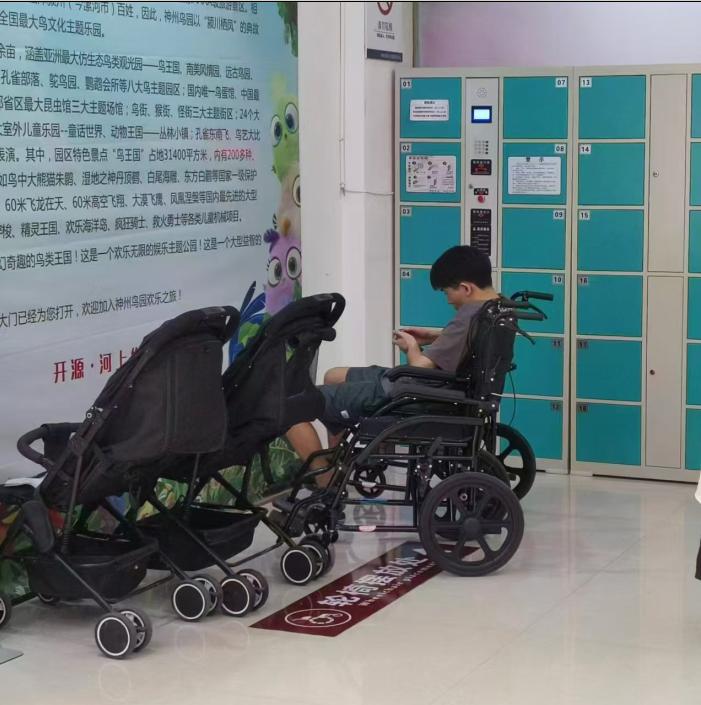 中秋節(jié)期間神州鳥(niǎo)園:一位游客坐輪椅玩手機(jī)很不文明。