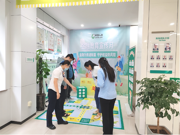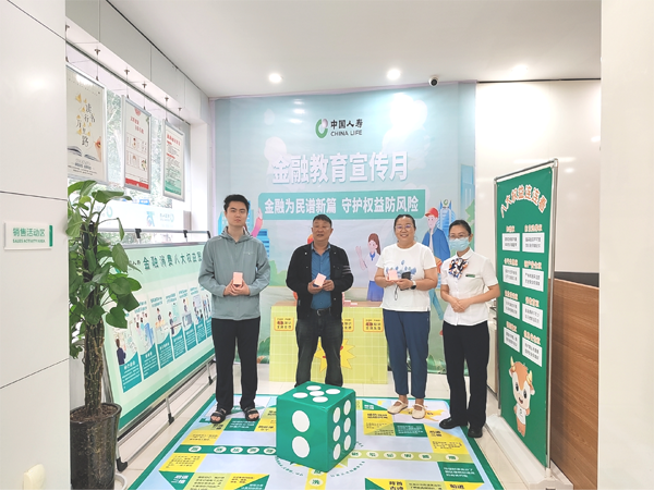 中國人壽壽險漯河分公司黃河路營業(yè)廳內(nèi)設置了全國統(tǒng)一的“金融知識便利店”,分為活動主海報、禮品區(qū)、金融機場互動版塊、“八大權(quán)益”連連看互動板塊,將金融知識融入妙趣橫生的互動游戲之中。金融機場飛行棋游戲互動版塊分為保險專機、反詐專機、反洗錢專機、反非專機,客戶朋友們輪流擲骰子前進或后退,根據(jù)點數(shù)對應位置進行做俯臥撐、背古詩、蹲起、模仿動物叫的游戲和學習金融保險知識等。“八大權(quán)益”連連看活動讓客戶朋友們?nèi)娴亓私庀M者八大權(quán)益等知識,大家在歡聲笑語中輕松掌握金融防騙、反洗錢、防范非法集資、金融保險知識等。公司對參與互動游戲的客戶朋友們送上了中國人壽專屬的小禮品,讓客戶在參與中收獲知識與喜悅。同時,寓教于樂的游戲項目有效提升了金融知識普及的覆蓋面與接受度,彰顯了中國人壽服務社會的責任擔當。