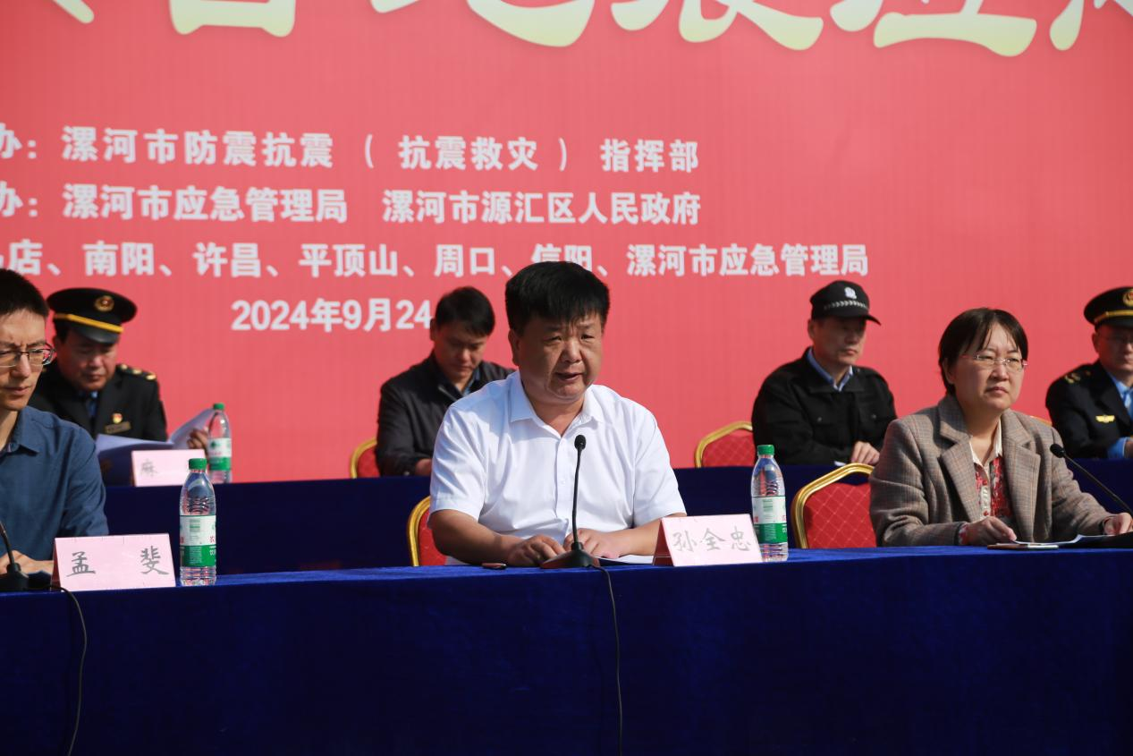 9月24日,豫南地震快速應急聯(lián)隊2024年度聯(lián)合地震應急演練在漯河市源匯區(qū)舉行。此次演練由漯河市防震抗震(抗震救災)指揮部主辦,漯河市應急管理局、源匯區(qū)人民政府承辦。平頂山市、許昌市、漯河市、南陽市、周口市、駐馬店市、信陽市應急管理局一同參加演練。河南省地震局黨組成員、副局長郝敏,漯河市政府副秘書長王振甫,漯河市應急管理局黨委書記、局長孫全忠, 源匯區(qū)委副書記、區(qū)政府區(qū)長史一鳴等出席活動。