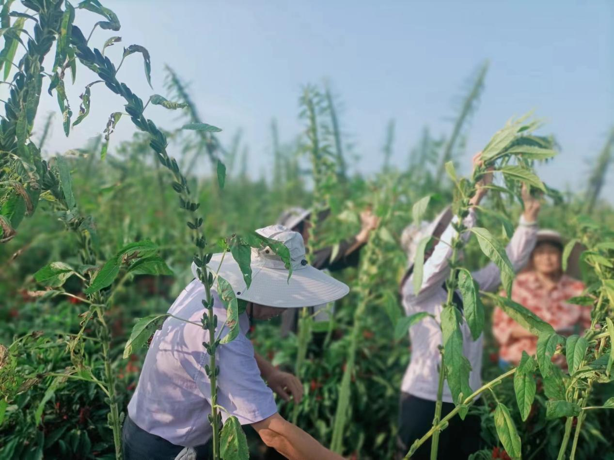 在臨潁縣三家店鎮(zhèn)50畝小麥-辣椒-芝麻間作套種技術(shù)示范基地,選用漯河市農(nóng)業(yè)科學(xué)院最新培育的芝麻新品種漯芝106,經(jīng)專家測產(chǎn):該間作模式辣椒不減產(chǎn)的情況下,畝增收芝麻56.5公斤,按照芝麻市場價每千克15元計,芝麻—小尖椒間作種植模式每畝增收847.5元,增收效益可觀。