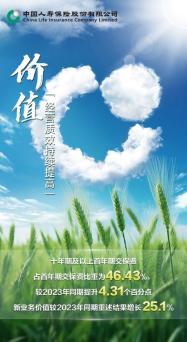 前三季度,中國人壽持續(xù)強化資產(chǎn)負(fù)債管理,積極推進(jìn)產(chǎn)品多元和業(yè)務(wù)形態(tài)多元,負(fù)債質(zhì)量不斷優(yōu)化,長期發(fā)展基礎(chǔ)進(jìn)一步夯實。十年期及以上首年期交保費保持快速增長,占首年期交保費的比重為46.43%,較2023年同期提升4.31個百分點;新業(yè)務(wù)價值保持快速增長,較2023年同期重述結(jié)果增長25.1%。