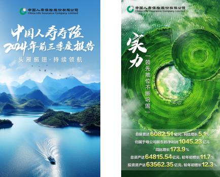 10月30日晚間,中國人壽保險股份有限公司(以下簡稱“中國人壽”,601628.SH,2628.HK)發(fā)布了2024年第三季度業(yè)績報告。在上年同期的高基數(shù)基礎(chǔ)上,中國人壽前三季度保險業(yè)務(wù)保持了較快發(fā)展,總保費、首年期交、十年期及以上首年期交等指標(biāo)穩(wěn)中有進(jìn),投資收益顯著提升,持續(xù)引領(lǐng)行業(yè)。同時,新業(yè)務(wù)價值保持雙位數(shù)的高速增長;銷售隊伍規(guī)模企穩(wěn)態(tài)勢鞏固,質(zhì)態(tài)有效改善。