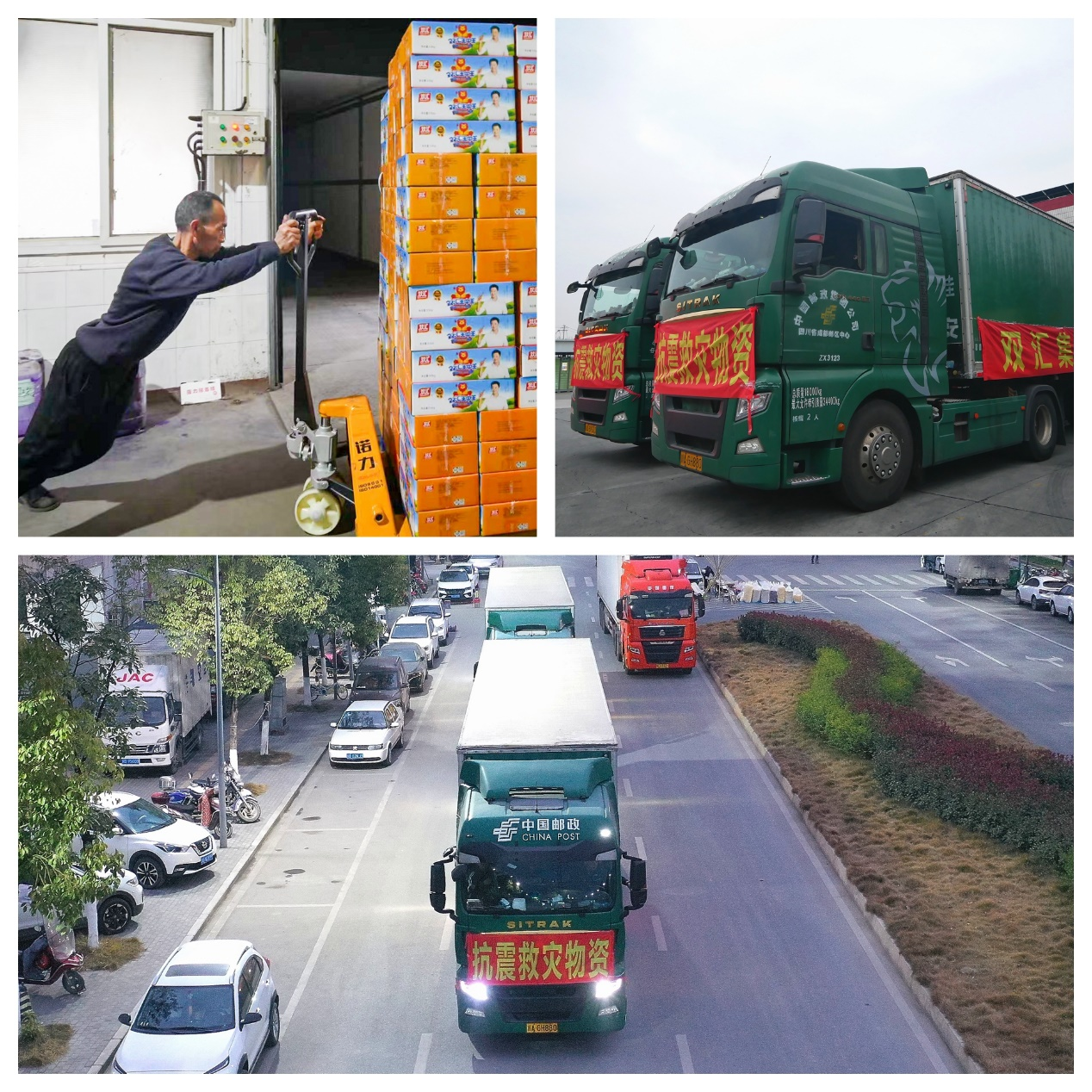 1月12日,雙匯集團從四川綿陽公司調(diào)撥的1萬件火腿腸等食品通過中國郵政快遞專車發(fā)往西藏日喀則市定日縣地震災區(qū)。