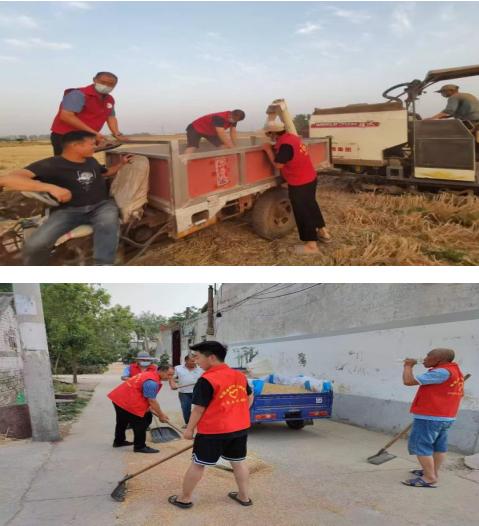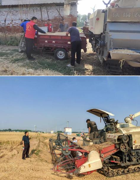 2025年5月21日,支部書記宋俊凱帶領(lǐng)網(wǎng)格長潘超文、網(wǎng)格員宋孟炎、宋書許、宋連三幫助村民潘現(xiàn)吾、宋彥超收割小麥搶收糧食。