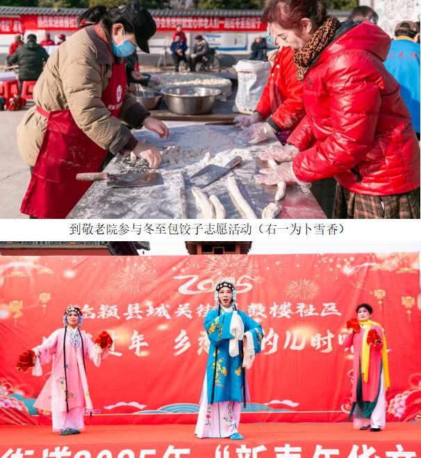 工作期間,卜雪香始終以“幫助別人就是幫助自己”為信條,在崗位上勤勤懇懇、任勞任怨,連年斬獲“三八紅旗手”“先進(jìn)工作者”等榮譽(yù),用實(shí)干書寫責(zé)任擔(dān)當(dāng)。退休后,她將對(duì)生活的熱愛與戲曲的癡迷轉(zhuǎn)化為服務(wù)社會(huì)的動(dòng)力,牽頭創(chuàng)立“新時(shí)代朝陽(yáng)藝術(shù)團(tuán)”,并于2024年加入鼓樓社區(qū)“鼓立幫”志愿服務(wù)隊(duì),正式組建紅色朝陽(yáng)文藝志愿服務(wù)隊(duì)。