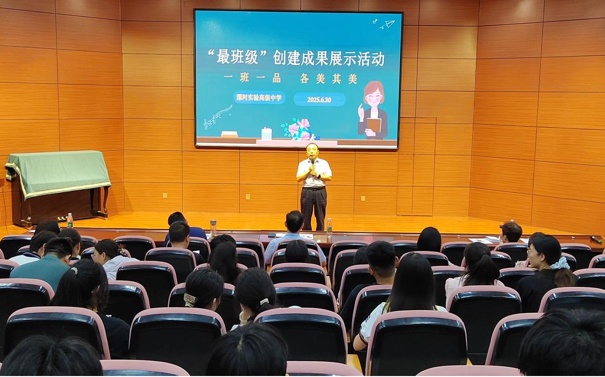 為深入踐行“三全育人”理念,全面展示“最班級(jí)”創(chuàng)建成效,構(gòu)建特色鮮明的班級(jí)文化生態(tài),漯河實(shí)驗(yàn)高級(jí)中學(xué)于2025年6月29日至30日在學(xué)校報(bào)告廳成功舉辦2024-2025學(xué)年下學(xué)期“最班級(jí)”創(chuàng)建成果展示活動(dòng)。高一、高二年級(jí)全體班級(jí)參與了此次展示,學(xué)校領(lǐng)導(dǎo)及中層干部組成評(píng)委團(tuán),政教處主任白金全主持活動(dòng)。