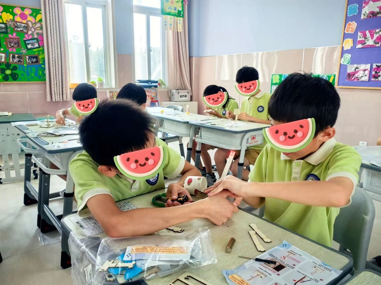 午后,孩子們又投入到了科學(xué)小制作的活動中。桌上擺滿了各種材料和工具,從簡單的紙張、吸管到復(fù)雜的電路元件,應(yīng)有盡有。指導(dǎo)老師耐心地為孩子們講解每個項目的原理與制作方法,鼓勵他們發(fā)揮想象力,動手創(chuàng)造出屬于自己的“科學(xué)作品”。在老師的指導(dǎo)下,孩子們或獨自思考,或三五成群地討論方案。有的制作了簡易的風(fēng)力發(fā)電機,利用風(fēng)力驅(qū)動小燈泡發(fā)光;有的則制作了有趣的磁懸浮列車模型,通過磁鐵的相互作用展示科學(xué)的魅力。每一件作品都凝聚著孩子們的智慧與汗水,是他們探索未知世界的寶貴成果。(作者:康冰倩)