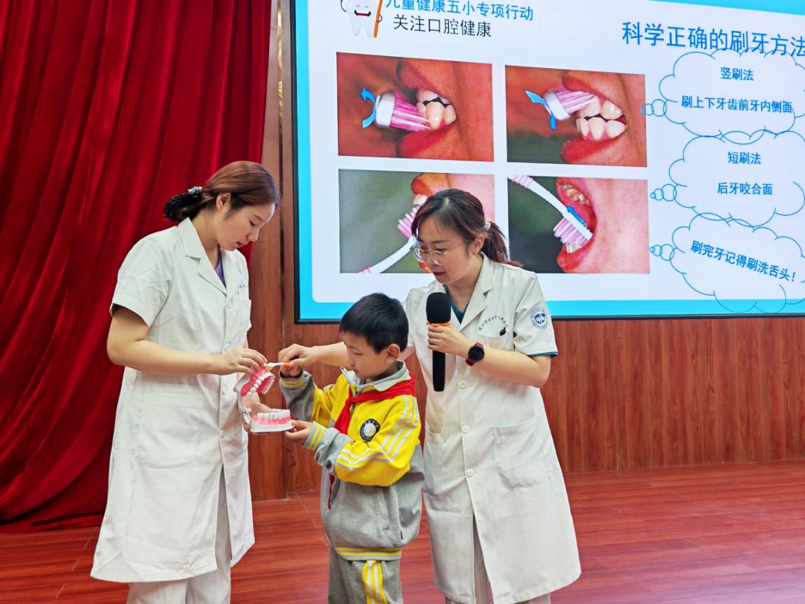 活動中,召陵區(qū)人民醫(yī)院兒童保健科楊柳醫(yī)生為孩子們帶來了一節(jié)生動有趣的健康知識課。課堂上,同學們在楊醫(yī)生的引導下積極互動,尤其是在刷牙規(guī)范講解環(huán)節(jié),少先隊員們踴躍參與實操演示,在趣味學習中樹立健康意識。這堂課程不僅傳遞了健康知識,更將黨對少年兒童的關懷具象為可感可知的教育服務,讓紅色初心在健康育人中落地生根。