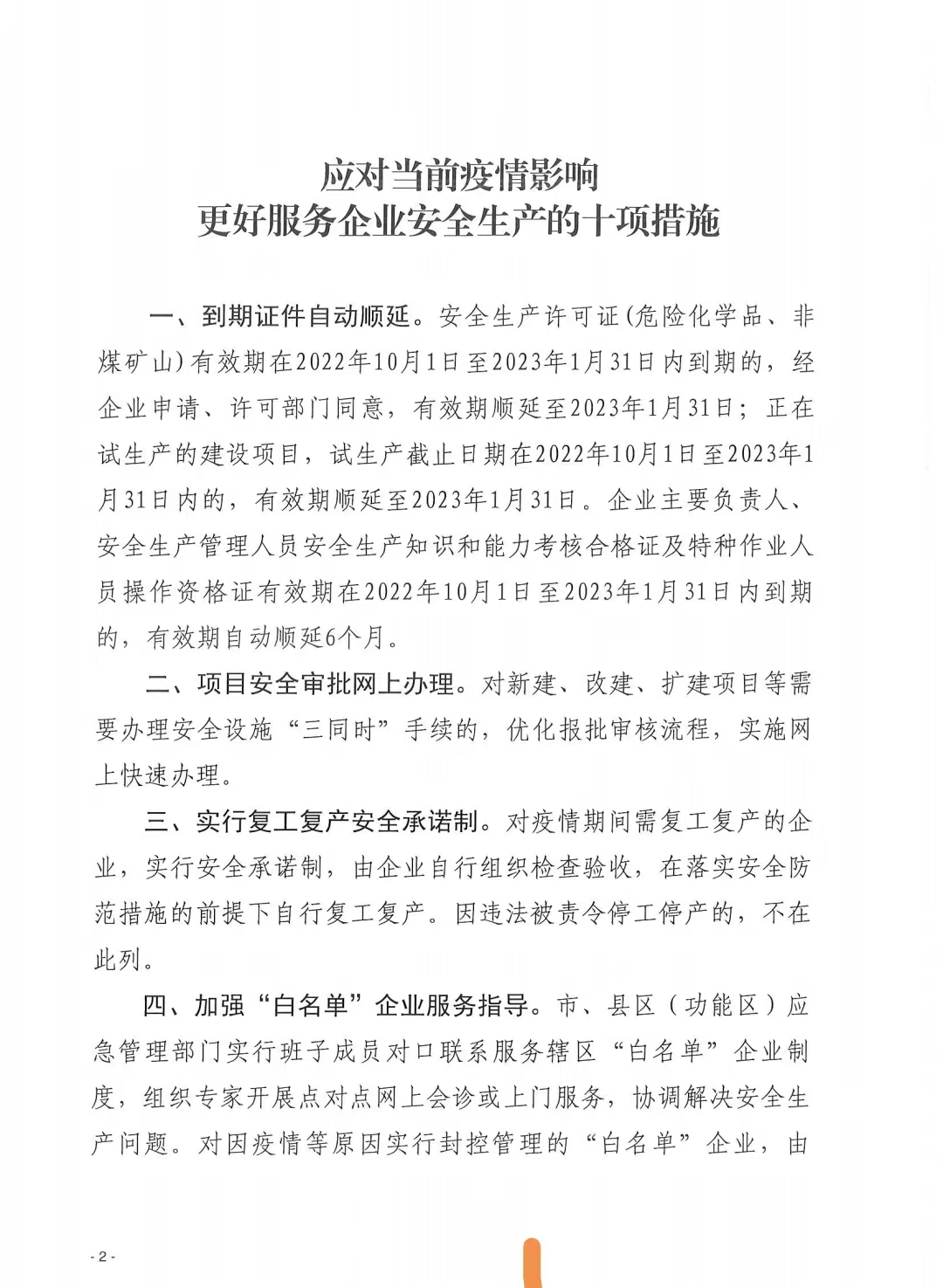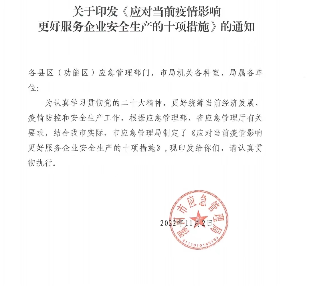 關(guān)于印發(fā)《應(yīng)對(duì)疫情影響更好服務(wù)企業(yè)安全生產(chǎn)的十項(xiàng)措施》的通知
