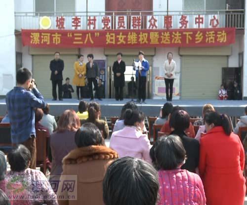 在國際“三八”婦女節(jié)來臨之際,為更好的提高婦女同胞的法律維權(quán)意識(shí),漯河市婦聯(lián)在召陵區(qū)坡李村舉辦婦女維權(quán)暨送法下鄉(xiāng)活動(dòng),將法律送至農(nóng)村婦女身邊。
