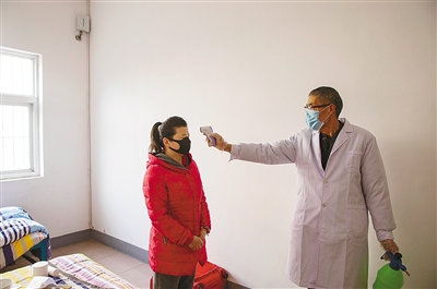 3月2日下午,在漯河市救助站二樓女區(qū),吃過午飯,余旺梅像往常一樣在房間內(nèi)休息,看手機(jī)上關(guān)于疫情進(jìn)展情況,然后測(cè)量體溫。余旺梅是一名月嫂,有時(shí)候,她還會(huì)看看書,或者練習(xí)一下按摩手法,為以后找工作做準(zhǔn)備。