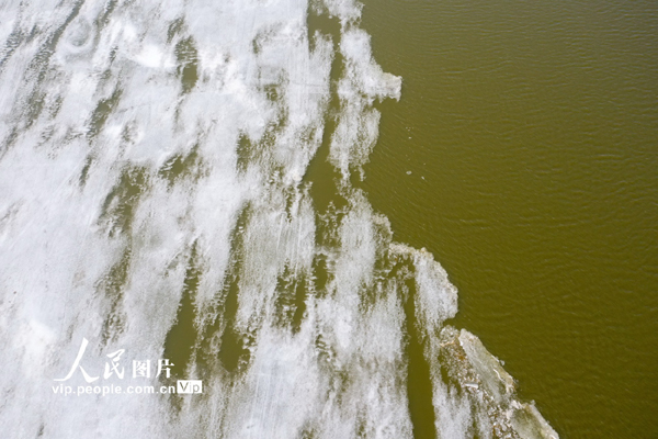 2020年3月22日,松花江哈爾濱段江面隨著氣溫升高正逐漸融化,形成“半江春水,半江寒冰”的自然現(xiàn)象。王昭博/人民圖片