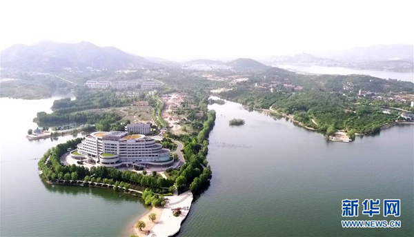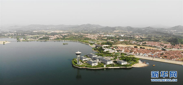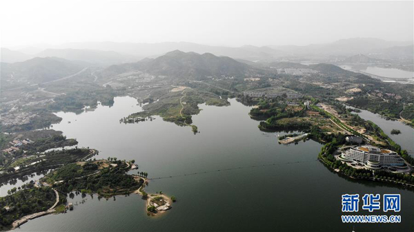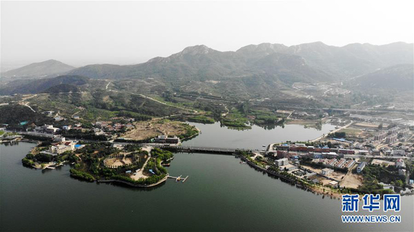 這是5月17日拍攝的雪野湖景色(無人機照片)。 山東濟南風景區(qū)——雪野湖波光粼粼,岸邊綠樹環(huán)抱,加上星星點點的帆船在湖面搖曳,景色宜人。 新華社記者王凱攝