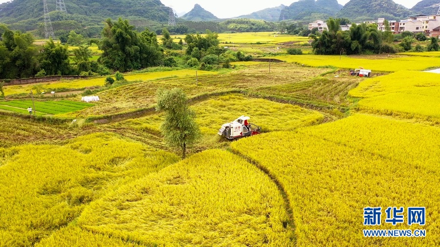 近日,在廣西柳州市魚峰區(qū)里雍鎮(zhèn)龍江村,各種農用機械開進場,拉開了早稻收割的序幕。一眼望去,成片的早稻在陽光下金燦燦一片,當?shù)剞r民抓緊晴好天氣收獲歸倉。