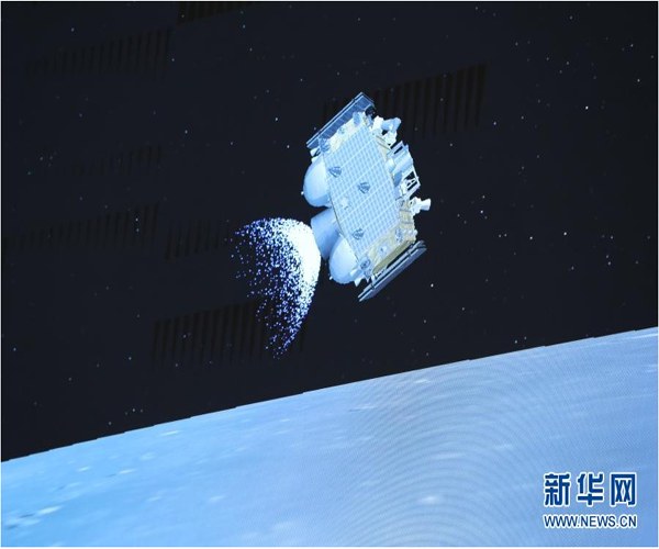 這是12月3日,在北京航天飛行控制中心拍攝的嫦娥五號(hào)上升器飛行過程。新華社記者 金立旺 攝