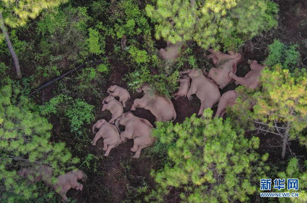 這是6月13日在云南省玉溪市易門(mén)縣十街鄉(xiāng)拍攝的象群(無(wú)人機(jī)照片)。