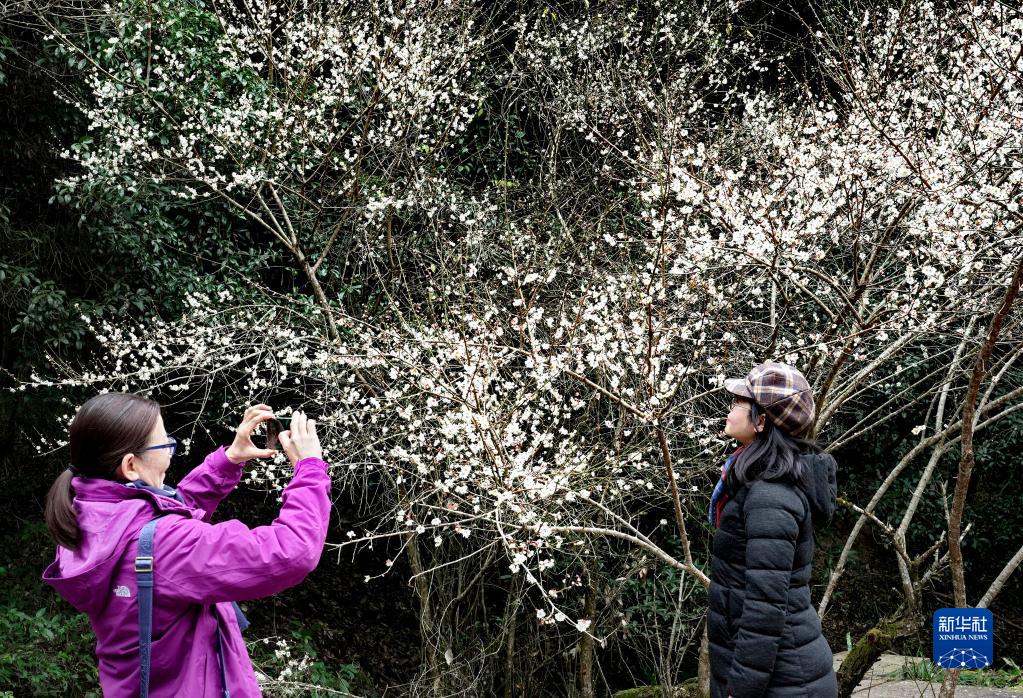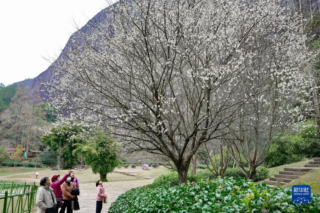 冬日時(shí)節(jié),福建武夷山國(guó)家公園內(nèi)的梅花相繼綻放,吸引眾多游人前來觀賞。