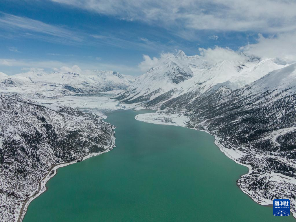 這是無(wú)人機(jī)拍攝的然烏湖(4月18日攝)。