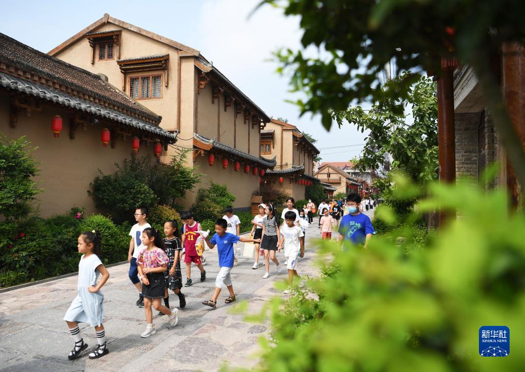 7月27日,小朋友在河南新鄉(xiāng)長垣市丁欒鎮(zhèn)官路西村參觀研學(xué)。