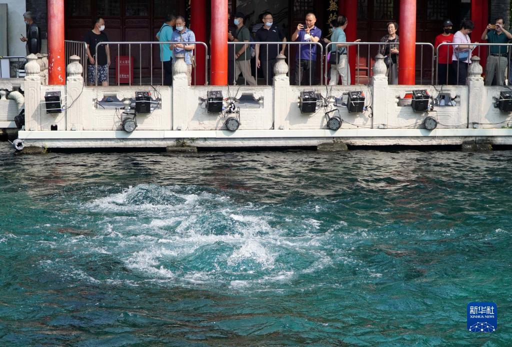 當(dāng)天,被譽(yù)為“天下第一泉”的濟(jì)南趵突泉地下水位達(dá)29.86米,泉水噴涌有力,呈現(xiàn)出“水涌若輪”的景觀。