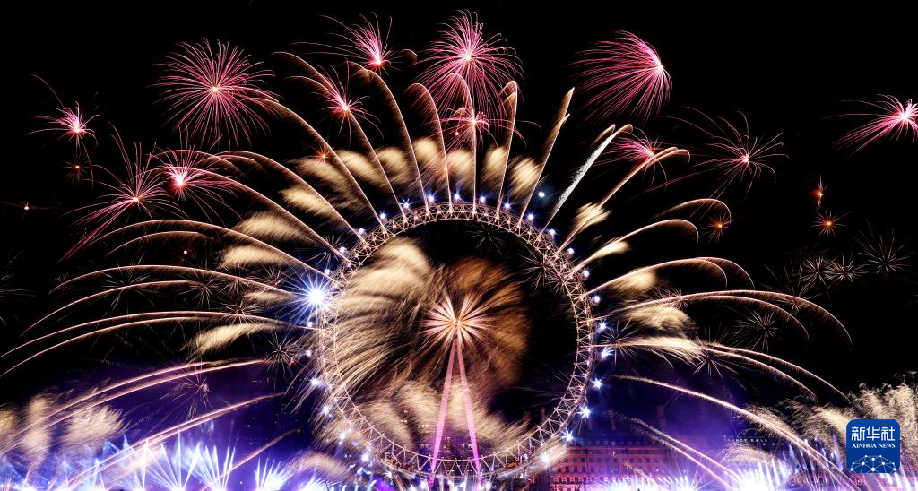 2024年1月1日凌晨,新年焰火在英國(guó)倫敦的倫敦眼上空綻放。