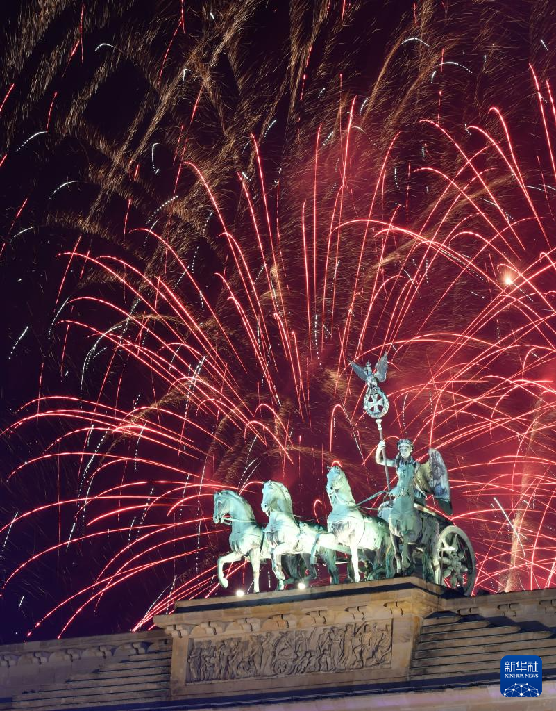 2023年12月31日晚,新年焰火在德國(guó)柏林的勃蘭登堡門上空綻放。