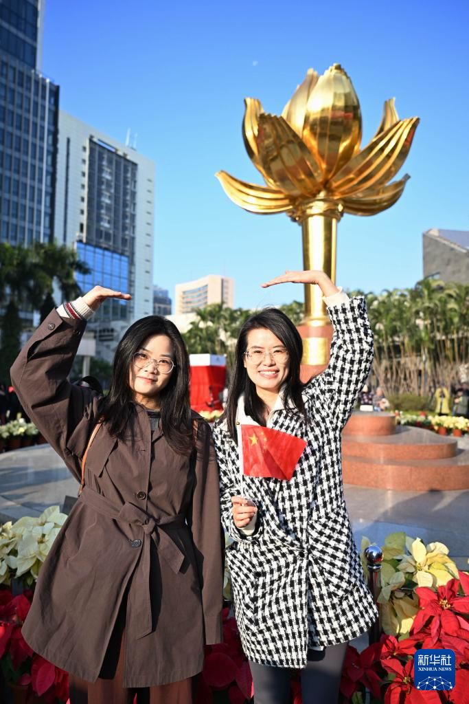 12月20日,澳門特別行政區(qū)政府隆重舉行升旗儀式,慶祝澳門回歸祖國25周年。這是人們在觀看升旗儀式后留影。