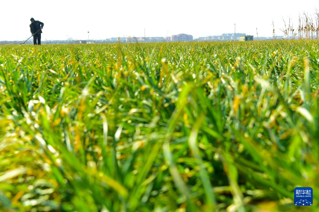 2月9日,山東省棗莊市山亭區(qū)城頭鎮(zhèn)徐洼村農(nóng)民在麥田勞作。
