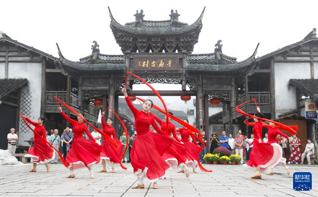 9月27日,演員在江蘇省句容市寶華山國家森林公園內的千華古村為游客表演節(jié)目。