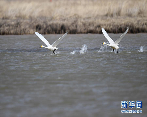 攝影師抓拍鷗鳥翔集黃河水岸 帶